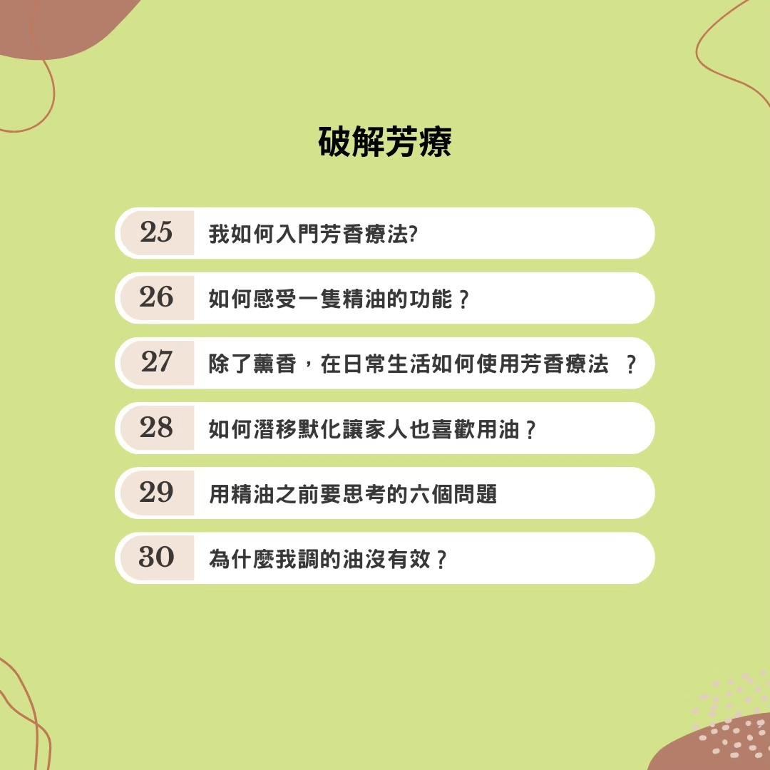 在讀芳療書或看文章時,可以很快的了解這是有料的內容,或是胡說八道不用看了,成為一個有芳療辨識力的人。